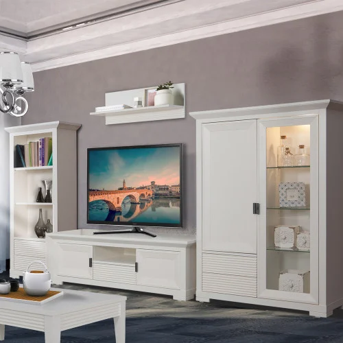 Amenajarea corectă a camerei de zi nu poate avea decat un efect benefic asupra intregului aspect al caminului tau. Amenajeaza-ti camera de zi in stil Verona Bianco: cu o biblioteca pentru cartile tale, cu o comoda tv, o comoda de bar si cu o polita pentru ornamentele tale, astfel vei avea o camera de zi pe gustul tau. Camera de zi Verona Bianco are sistem de inchidere a sertarelor PUSH TO OPEN. Biblioteca are un rol dublu intr-o incapere, ea ofera un loc de depozitat carti dar si un loc pe care poti sa il personalizezi cu obiecte de decor inedit. Biblioteca Verona Bianco iti ofera loc pentru toate si un plus de eleganta si originalitate locuintei tale. Biblioteca Verona Bianco pune accent pe simplitate, abundentă, oferind un aer chic locuintei tal. Aceasta creeaza o atmosfera primitoare si luminoasa. Cele trei rafturi deschise din partea superioara sunt ideale pentru carti sau obiecte decorative. Sertarul din mijloc are sistem de deschidere/inchidere tip Push To Open, ideal pentru organizarea si accesul rapid catre produse de dimensiuni reduse, iar partea inferioara este prevazuta cu doua rafturi acoperite cu o usa.
