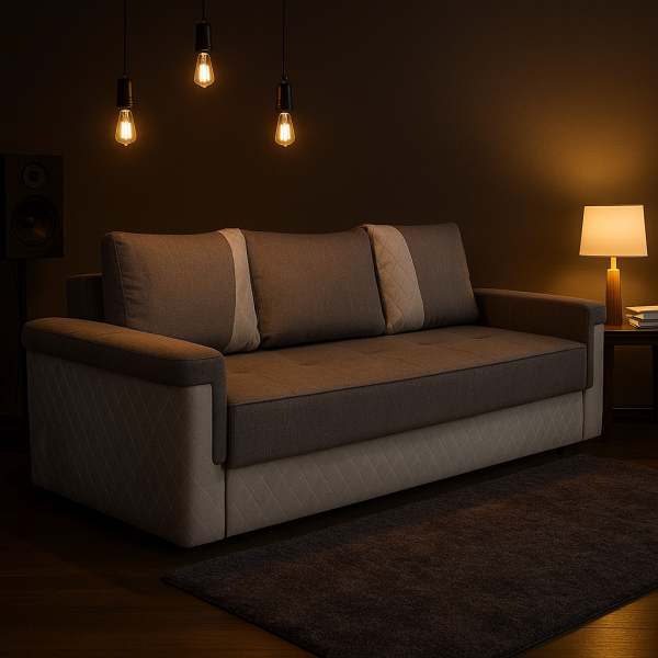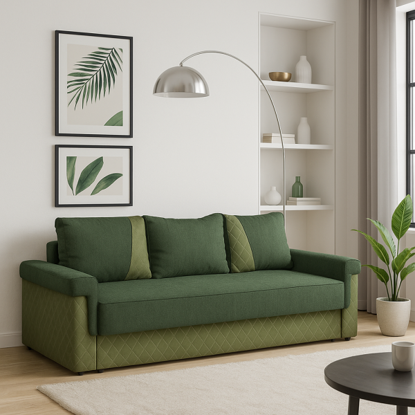Material: Canapea realizata din lemn masiv si panouri aglomerate din aschii de lemn, arcuri sinusoidale si spuma poliuretanica de inalta rezistenta;