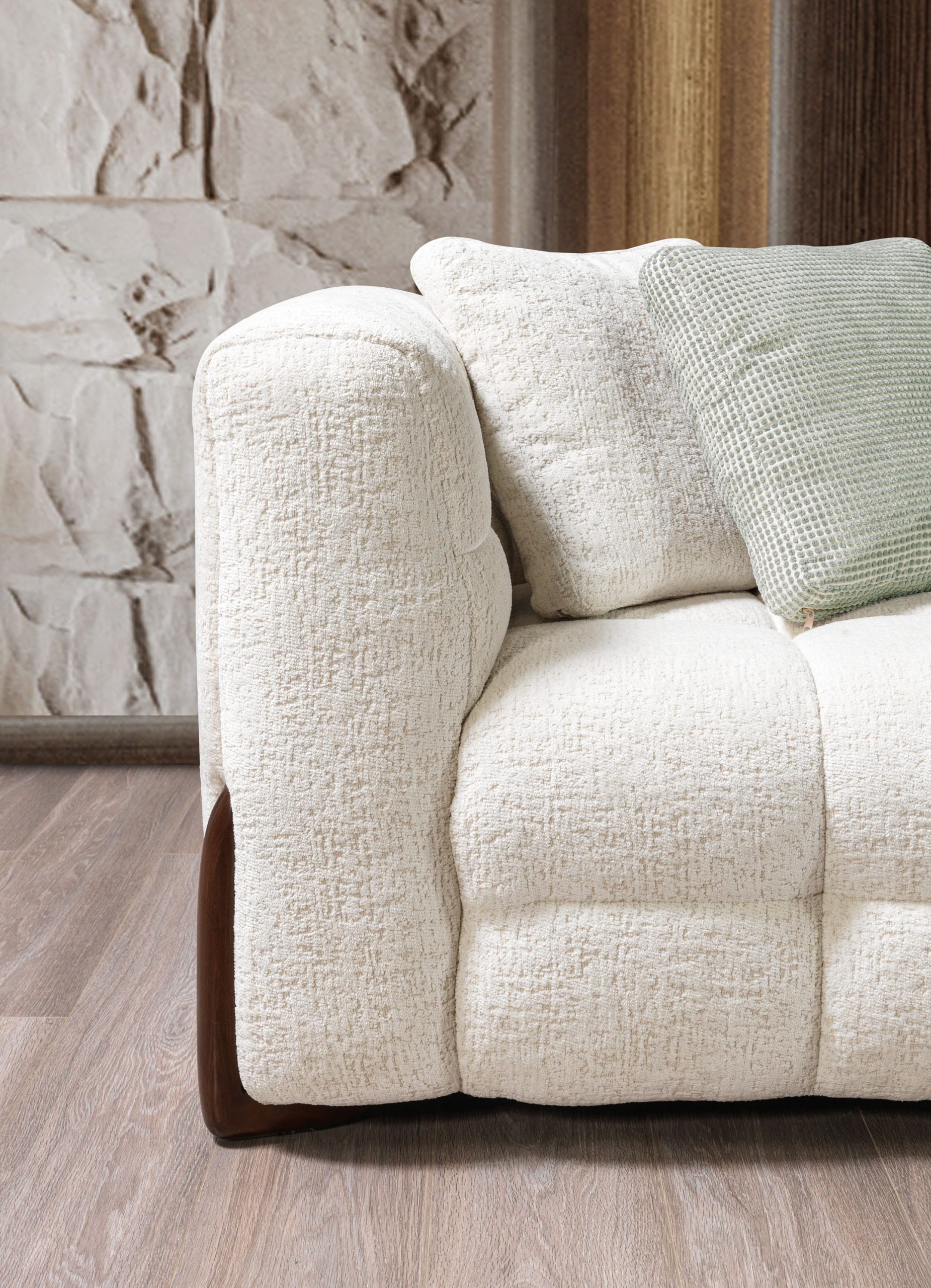 Setul de colț Bonito se potrivește perfect cu stilurile de decorare moderne și minimaliste. Datorită designului său elegant și paletei de culori neutre, acest set de colț se integrează cu ușurință în decorul existent al camerei tale. Bonito este un punct focal elegant și elegant pentru camere de zi sau saloane mari.