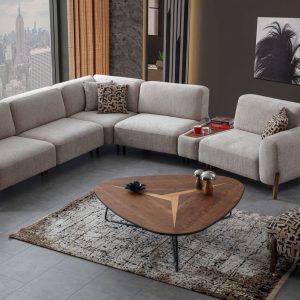 Coltarul Sorrento este conceput pentru a îmbina confortul zilnic cu funcționalitatea practică. Structura sa solidă este realizată din lemn masiv de fag și panouri din MDF, asigurând durabilitate și stabilitate în timp. Tapițeria este confecționată dintr-o stofă textilă premium, rezistentă la uzură, în nuanțe diferite , ușor de asortat în orice decor interior.