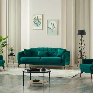 Mecanismul extensibil este de tip sertar, cu deschidere ușoară, transformând canapeaua într-un pat spațios, ideal pentru oaspeți sau pentru momente de odihnă. Picioarele, adaugă stabilitate și un accent elegant.