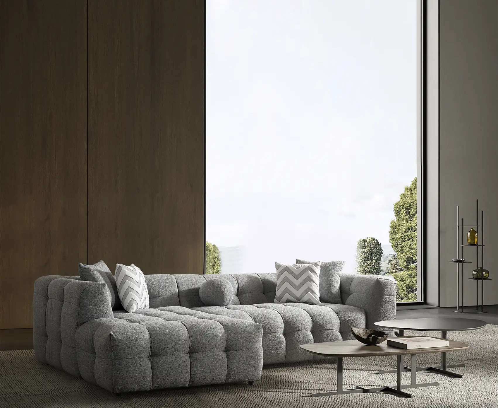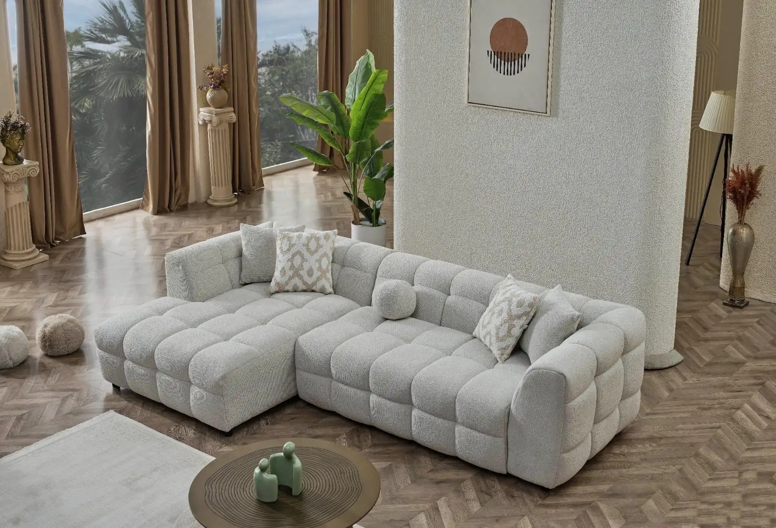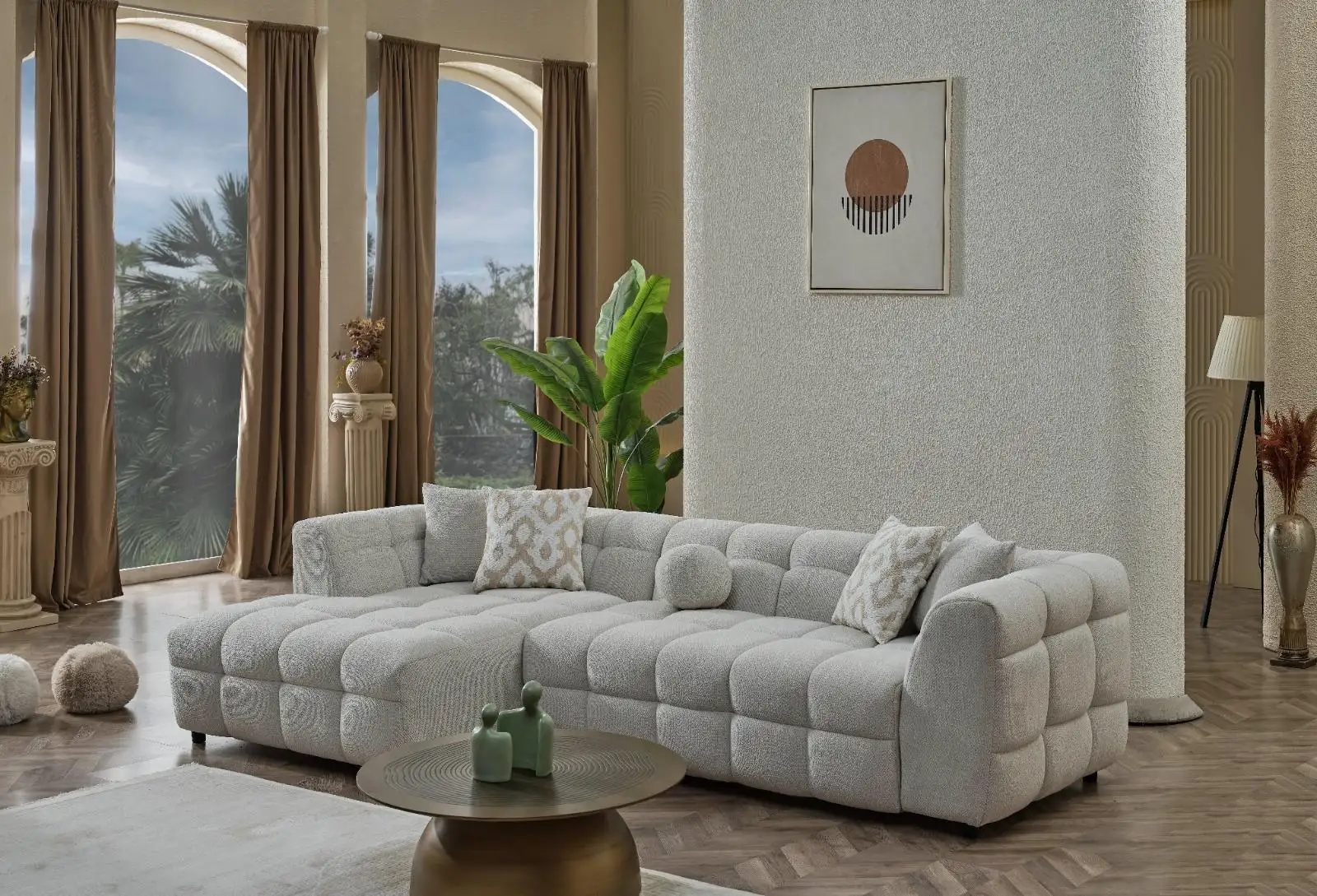 Bratele Coltarului Toronto sunt frumos lucrate, urmarind o linie ergonomica, pentru a-ti sprijini bratele atunci cand stai la televizor, sau cand citesti.Picioarele joase îi conferă un aspect rafinat, completând estetica modernă a întregului design.Materialele premium și finisajele de înaltă calitate îl fac un produs rezistent în timp, potrivit atât pentru spații mari, cât și pentru încăperi de dimensiuni mai reduse.