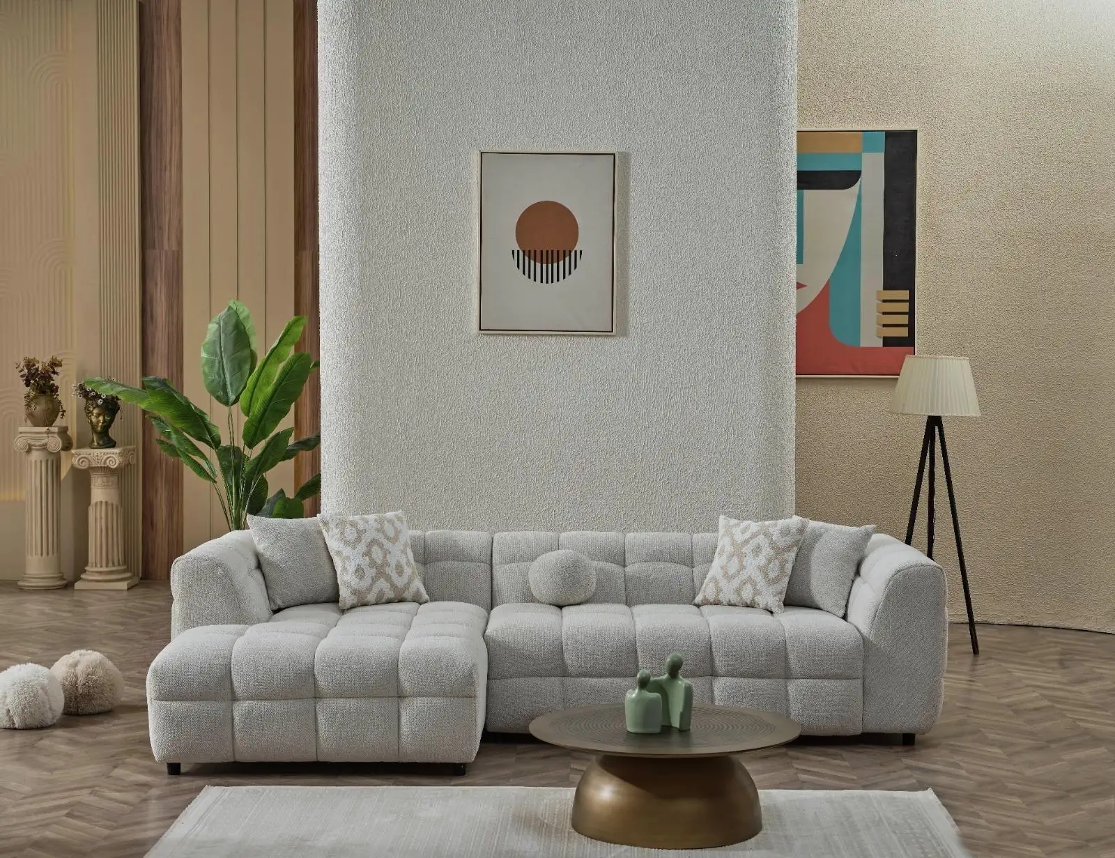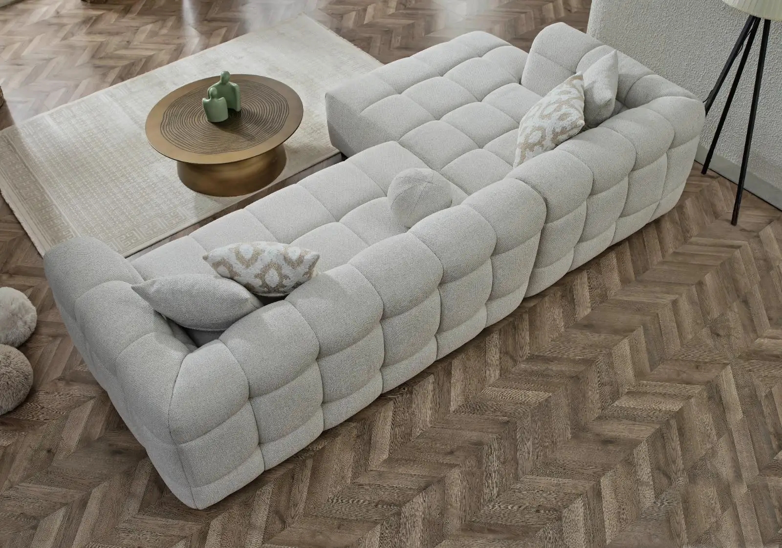 Designul său permite o integrare facilă în orice tip de decor, fie că vorbim de un living minimalist sau unul clasic.Culoarea colțarului Toronto deschide spațiul unde este amplasat amplificând feeling-ul premium al unui colțar de excepție. Îl puteți amplasa cu succes într-un living direct pe parchet sau pe un covor, pe gresie sau pe alte tipuri de suprafețe, fără a risca ca acesta să nu se potrivească cu restul elementelor de mobilier.