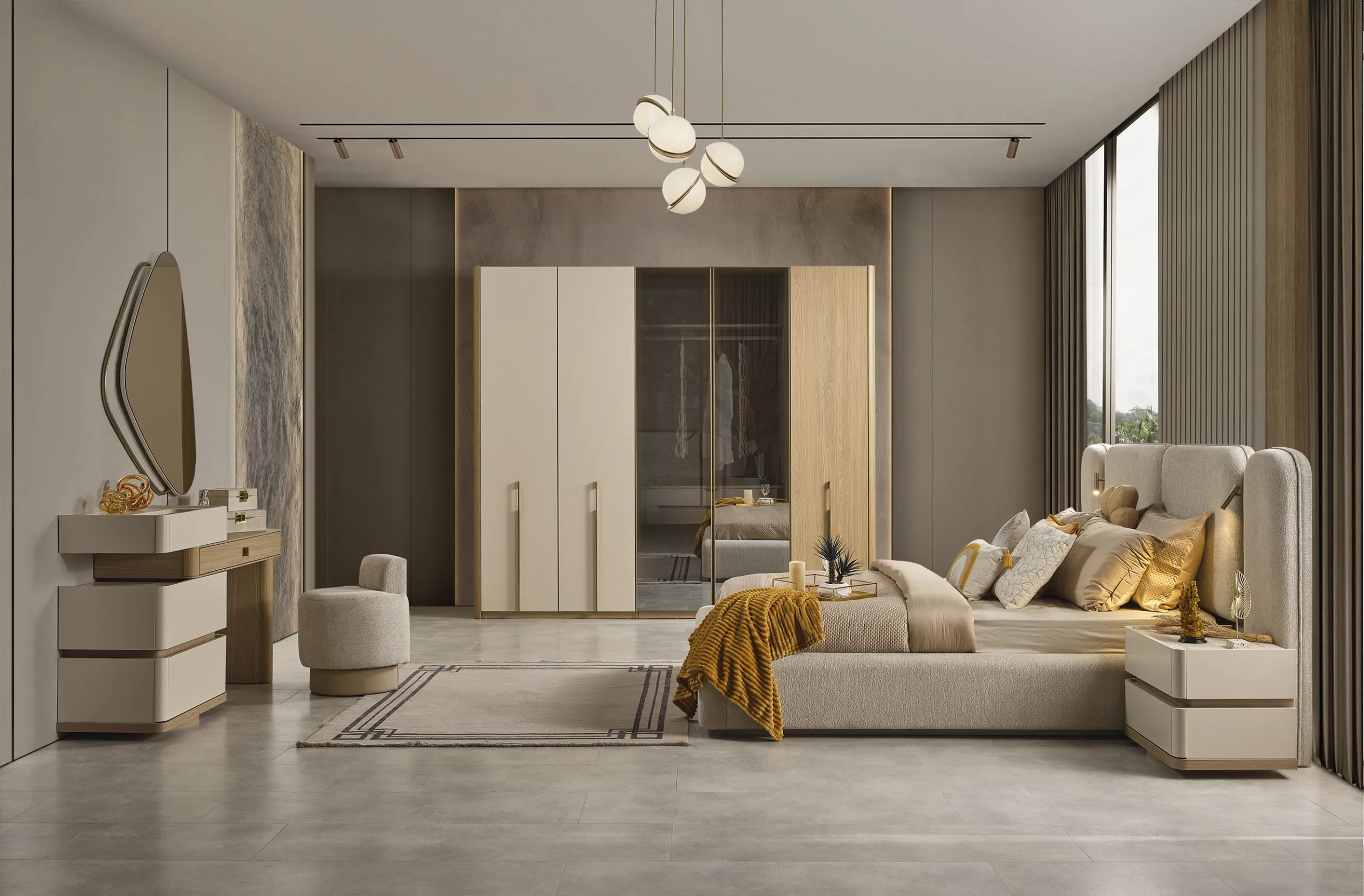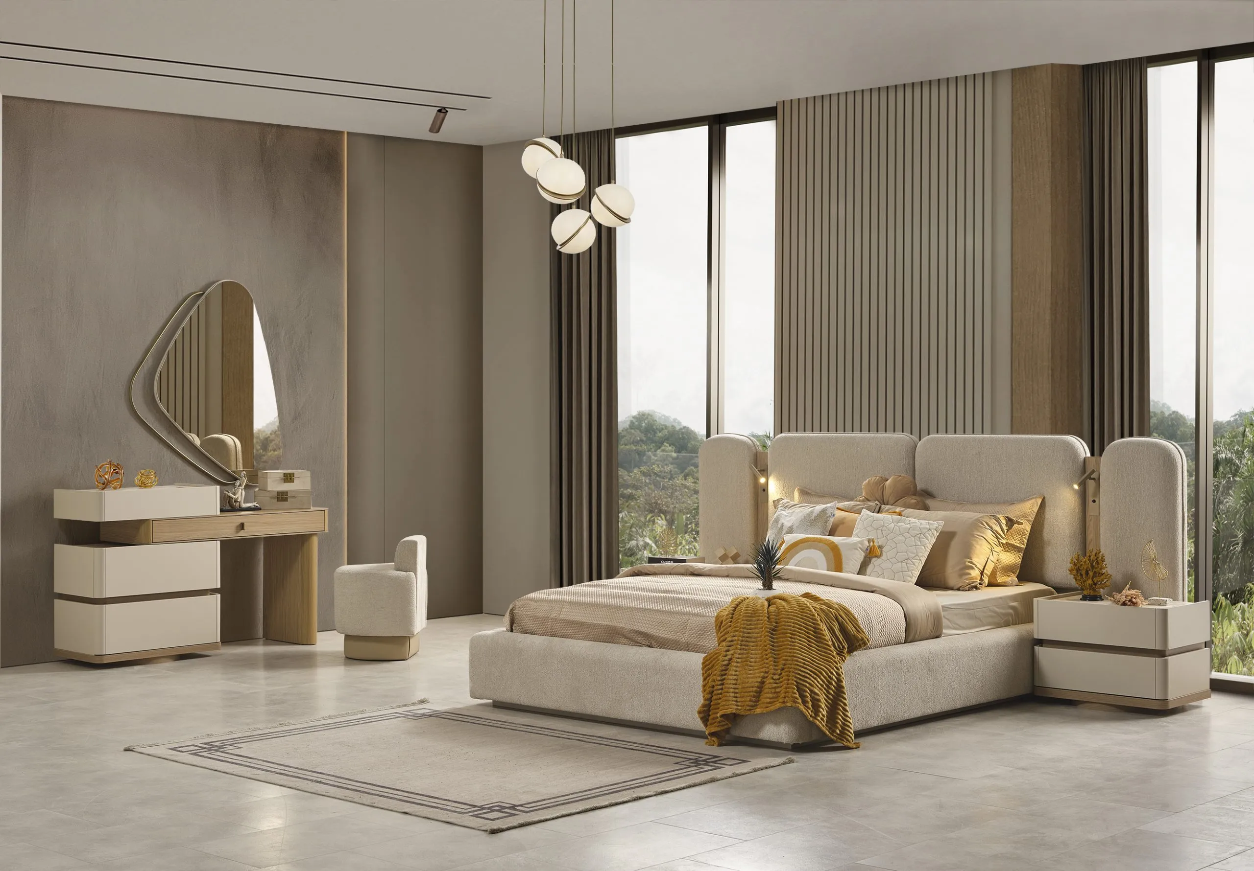 Pretul afisat este pentru: Sifonier 2 usi stanga sidreapta+pat 160×200 cu lada normala+ 2xnoptiera+masa de toaleta cu oglinda!