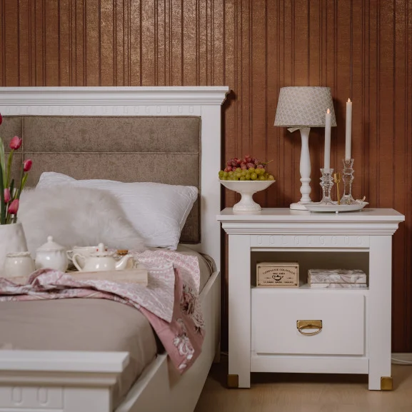 Designul clasic, cu accente vintage, te introduce într-o stare de visare la propriu, dar și la figurat, la vremuri când timpul curgea, parcă, mai încet, însă această mobilă de dormitor cu cromatica neutră și liniile simple se va integra perfect în orice stil de amenajare.
