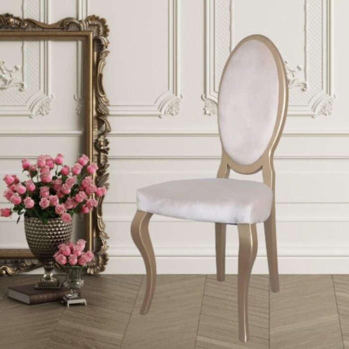 Scaun cu design clasic realizat din lemn masiv personalizat cu tapițerie la alegere. Alegerea perfectă pentru sectorul rezidențial sau HoReCa.