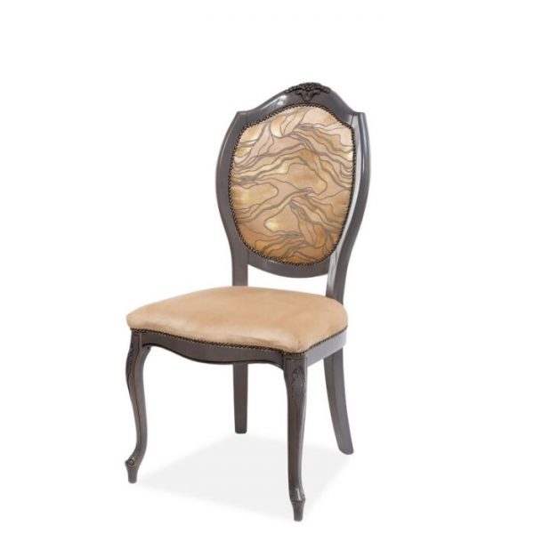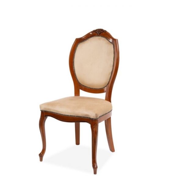 Scaun cu design clasic realizat din lemn masiv, personalizat cu tapițerie la alegere. Alegerea perfectă pentru sectorul rezidențial sau HoReCa.