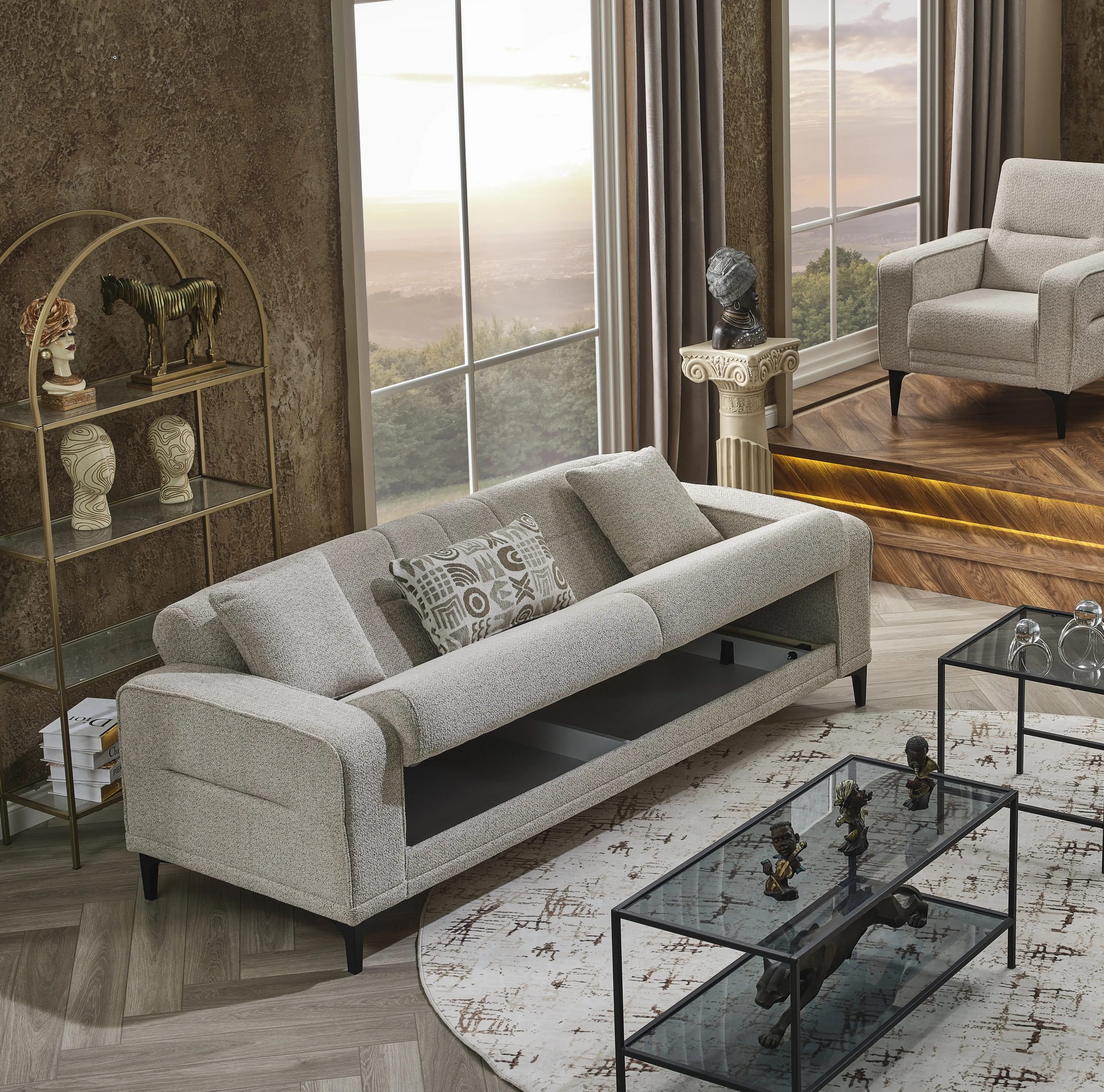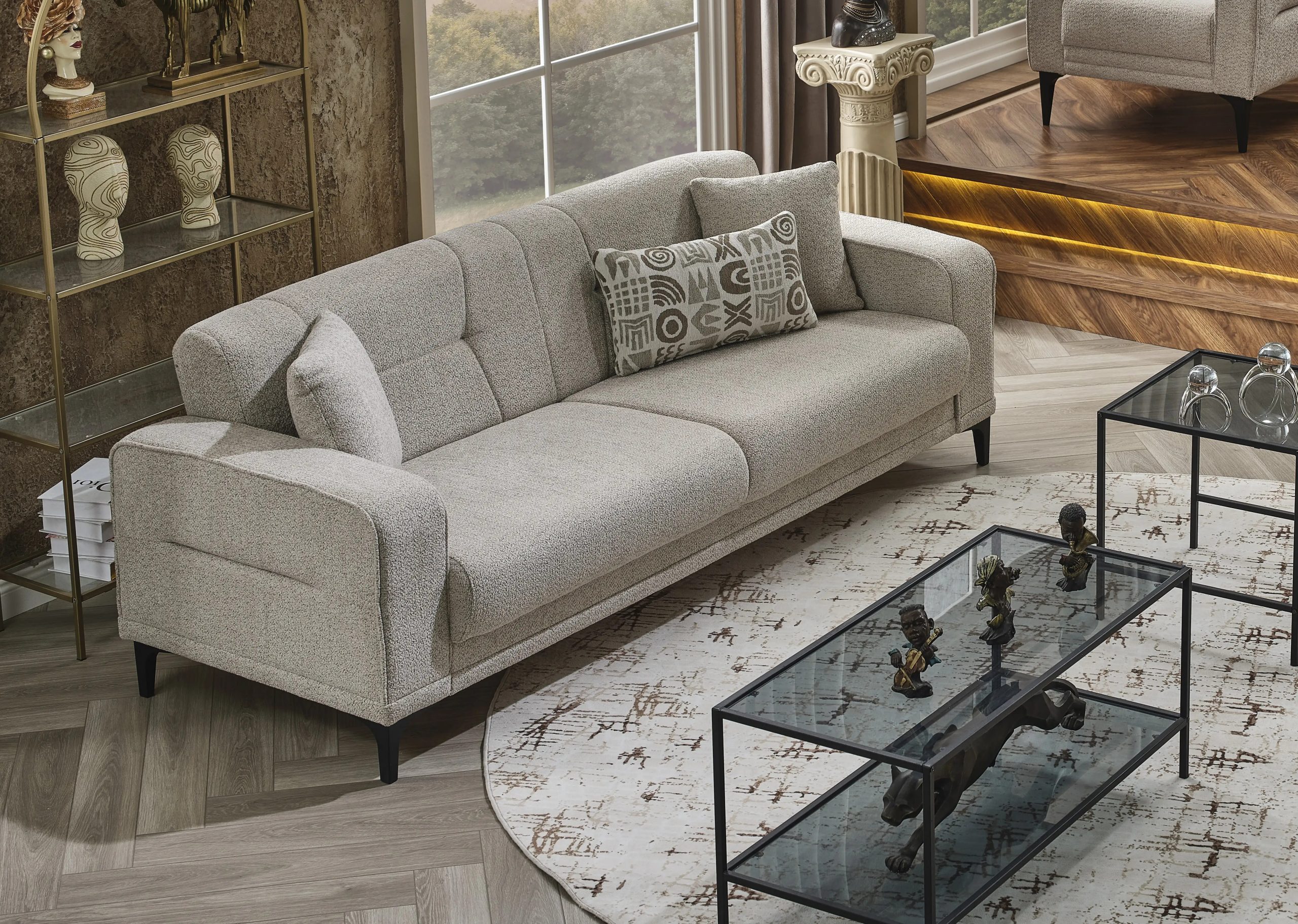 Canapeaua extensibila cu 3 locuri Focus este prevazuta cu lada pentru depozitare a lenjeriei si ofera suprafata de dormit si confortabile.Salteaua comoda te va face sa crezi ca dormi in patul unui hotel de 5 stele! In plus, mecanismul de extensie al canapelei este de tip Zero Wall, ceea ce promite o economie de spatiu in incapere, dar si o manevrare usoara la trecerea din pozitia strans in cea extins si invers.Poti deschide canapeaua seara de seara, fara sa iti faci griji ca vei strica mecanismul. Accesul catre lada pentru lenjerie este facilitat de mecanisme metalice foarte rezistente in timp.