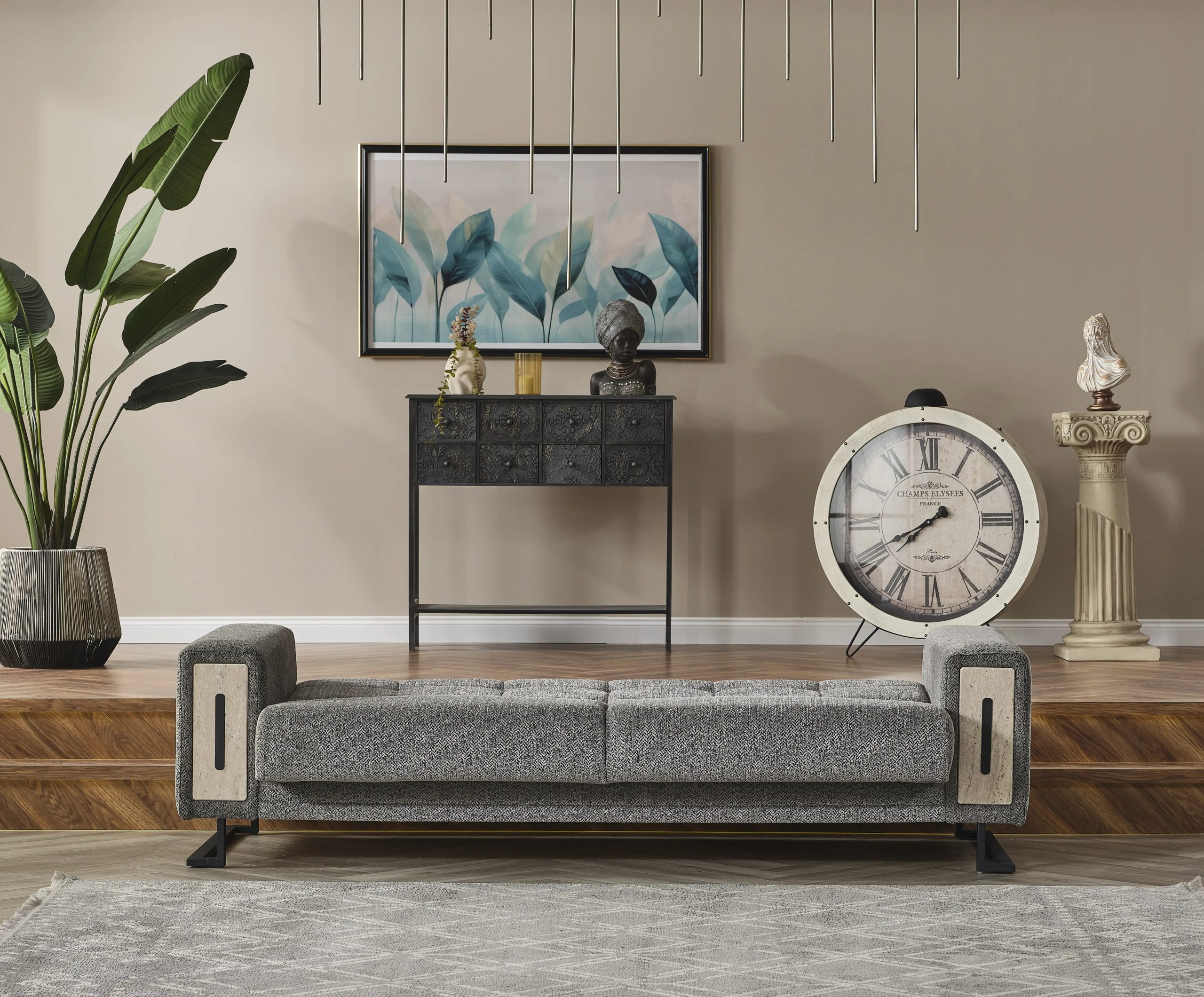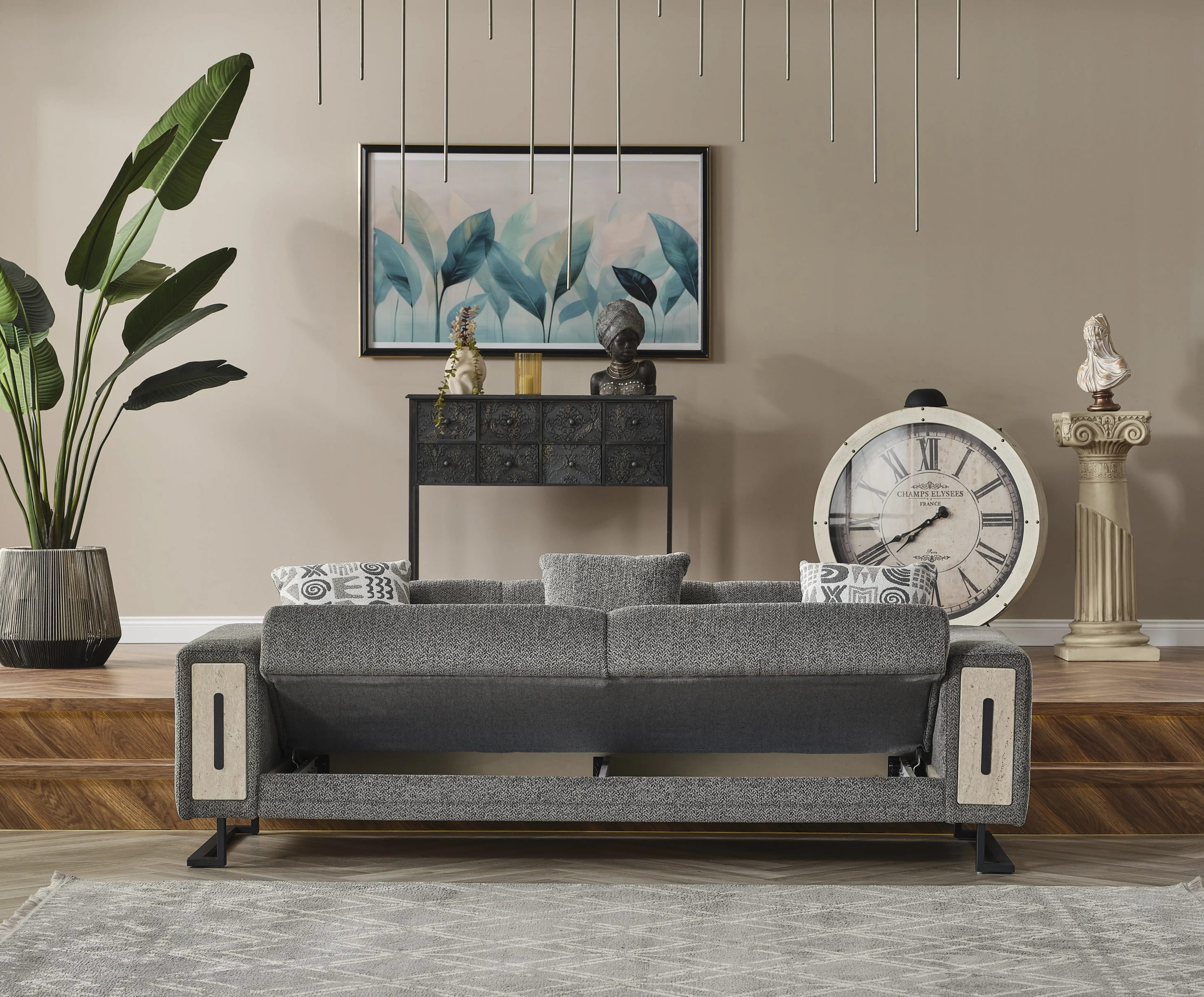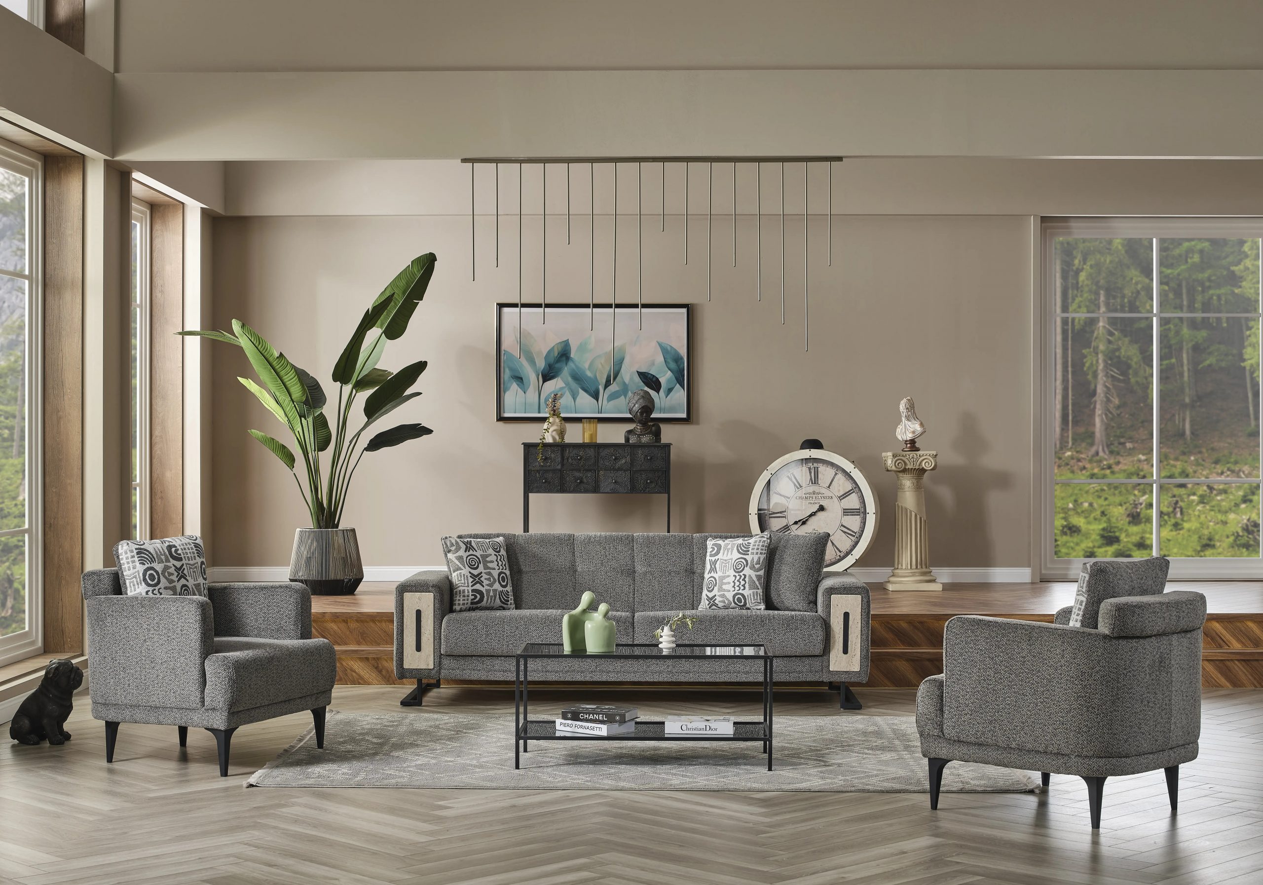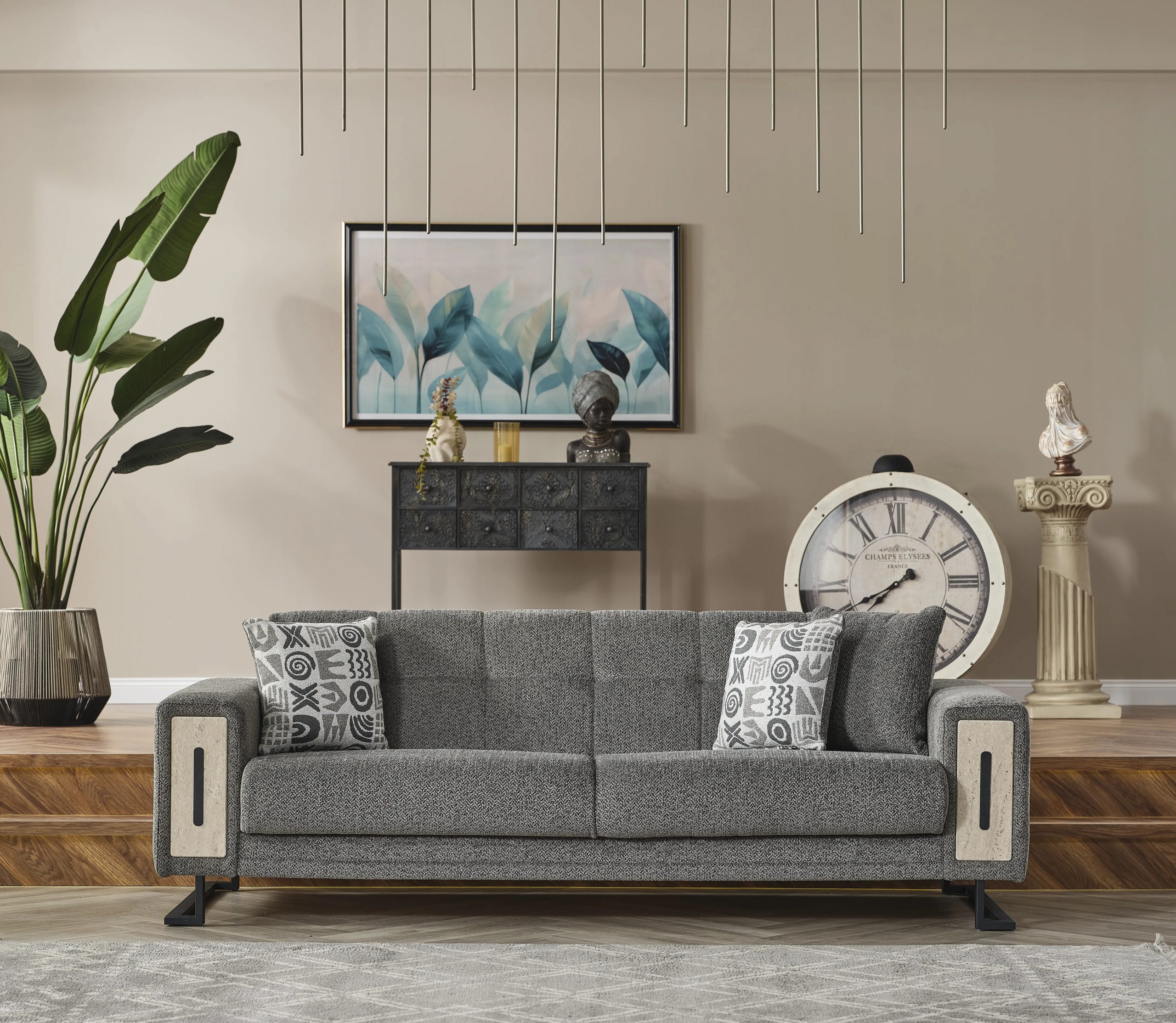 Setul modern Loft incântă prin eleganța și funcționalitatea sa si adaugă o notă de lux în living.Canapeaua Loft este caracterizata de deisgnul bratelor, al spatarului si al ornamentului din mdf, care invaluie bratele acesteia.