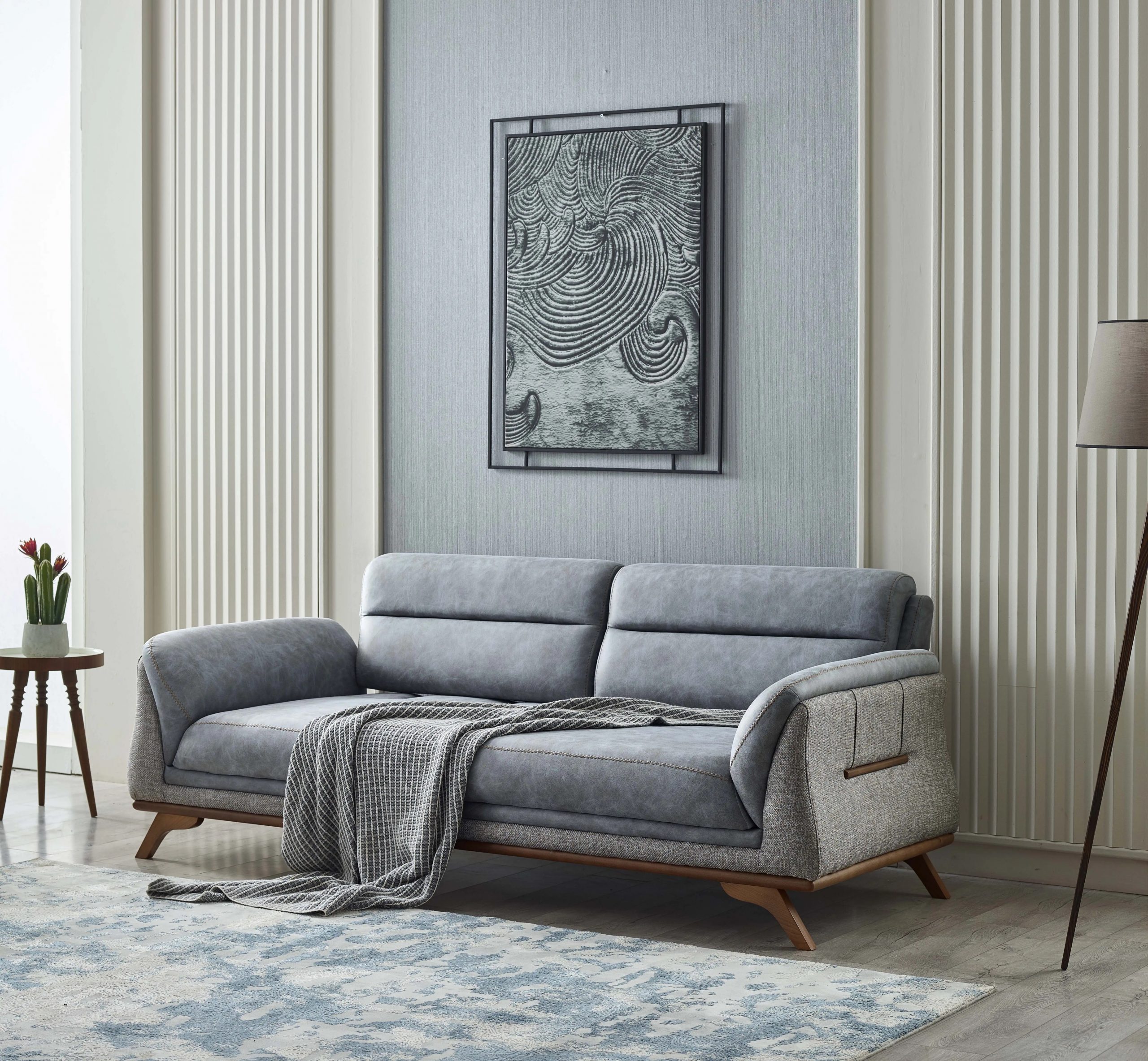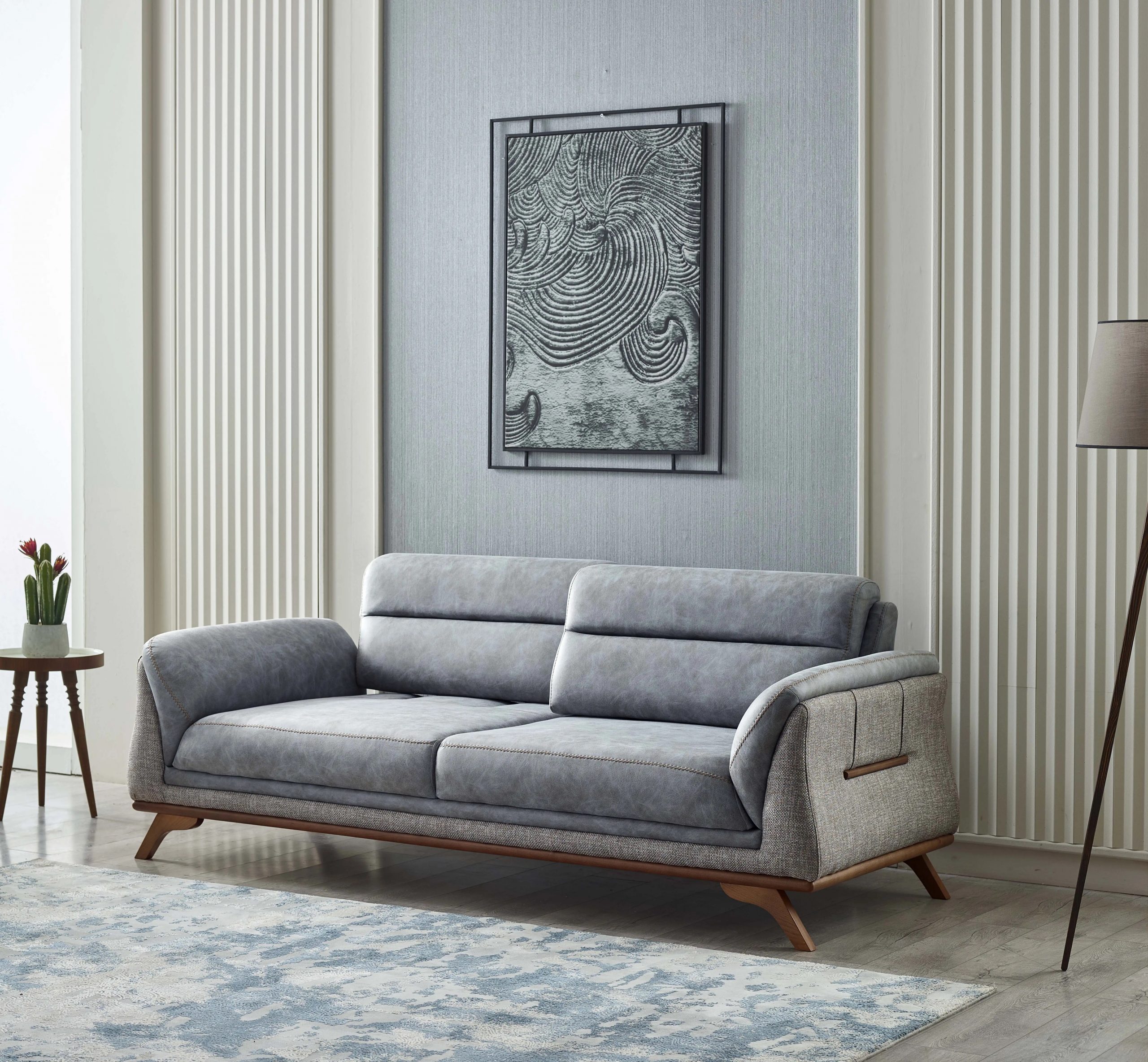 Spatarul si bratele acestei canapele contrastează fenomenal cu nuanta tapiteriei de o culoare armonioasa, conferindu-i o strălucire deosebită.In completare, saltelele cu spuma de densitate medie ajuta la distribuirea uniforma a greutatii corpului. Astfel, ai un suport excelent pentru coloana, fie ca stai intins sau rezemat si te uiti la TV.