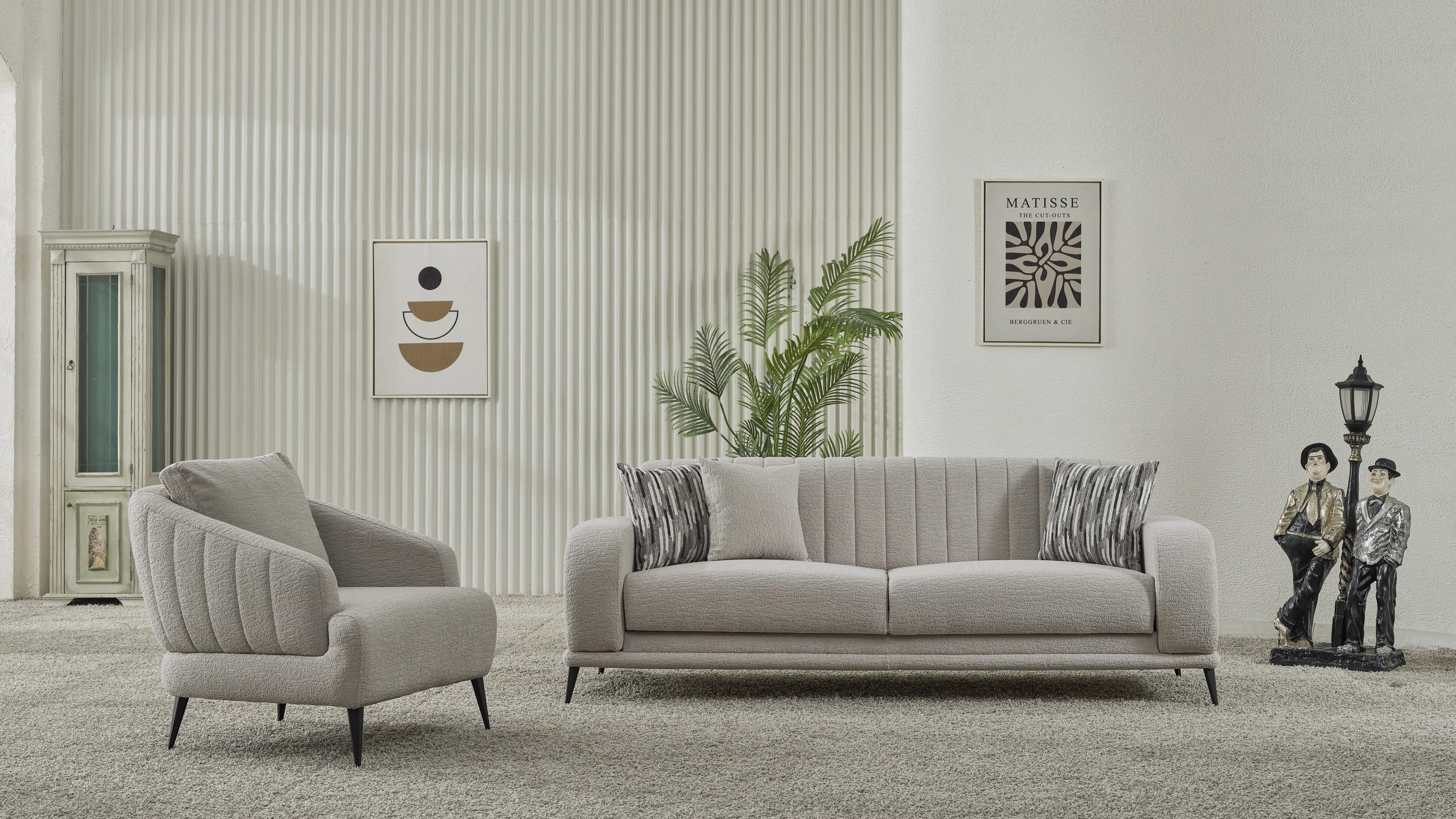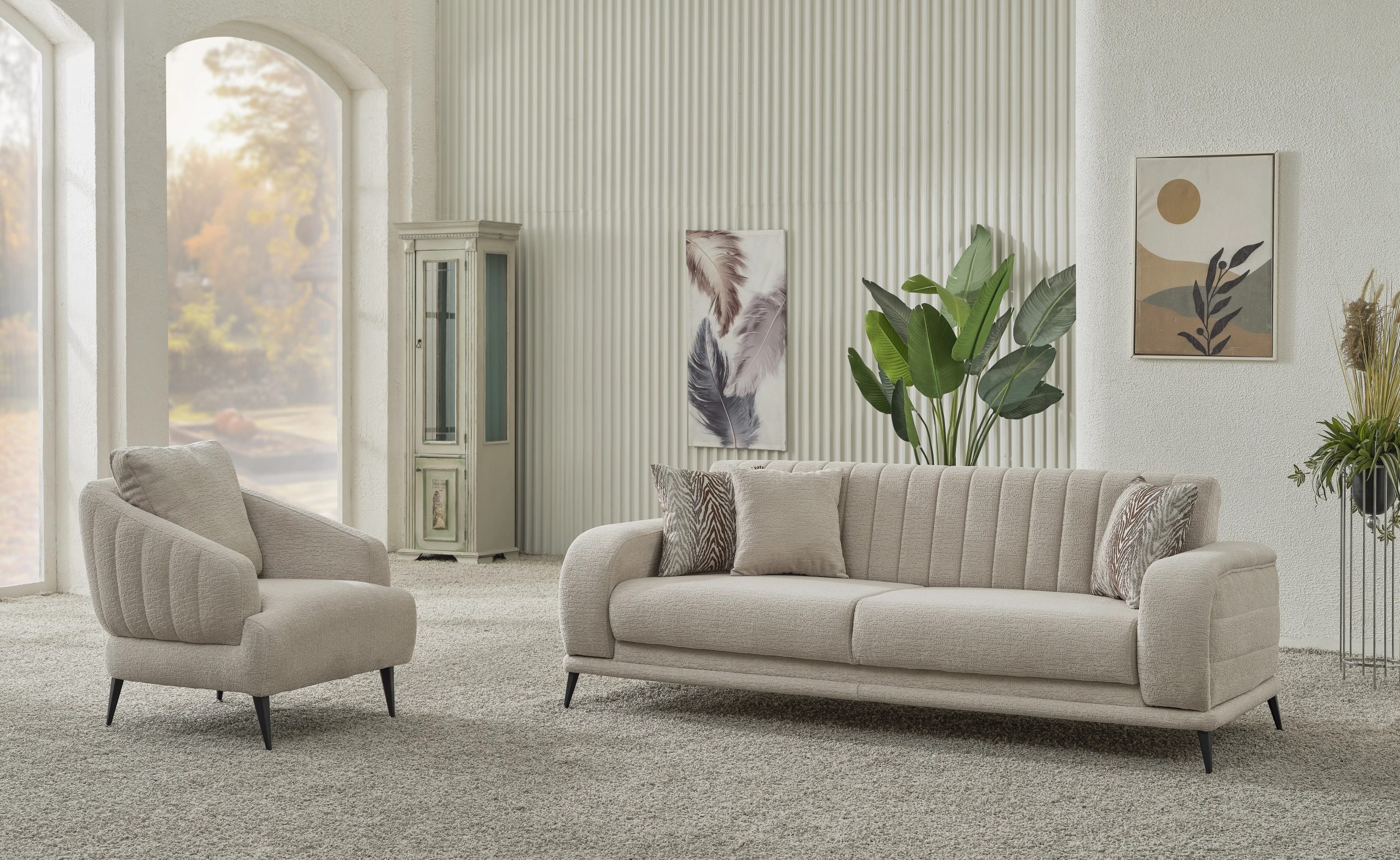 Setul de canapele si fotolii Havana atrage admirația uluitoare prin designul său modern,picioarele moderne din metal negru.