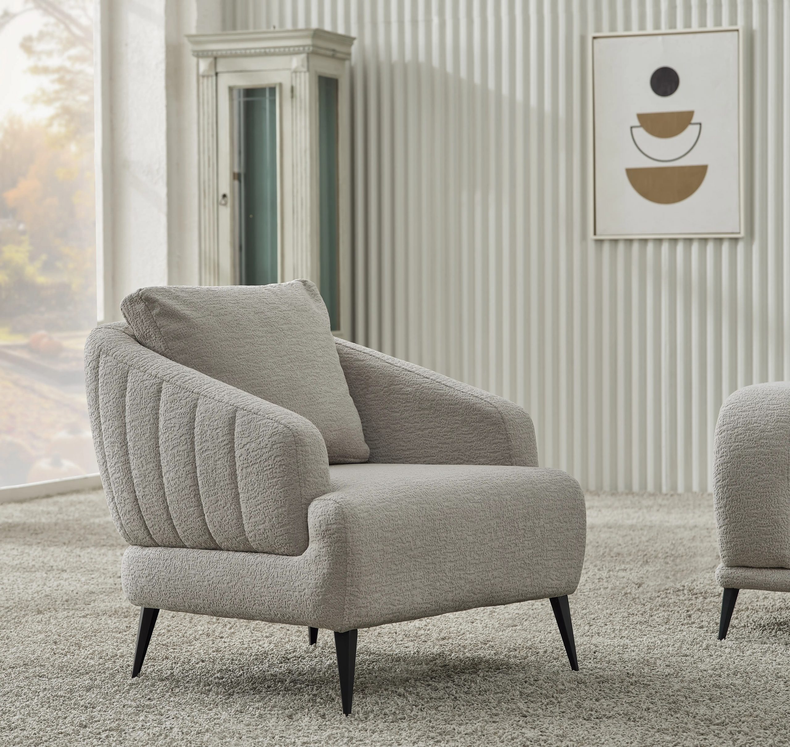 | Constructie | Schelet metalic,lemn de fag,stofa Boucle ,culori variate. |