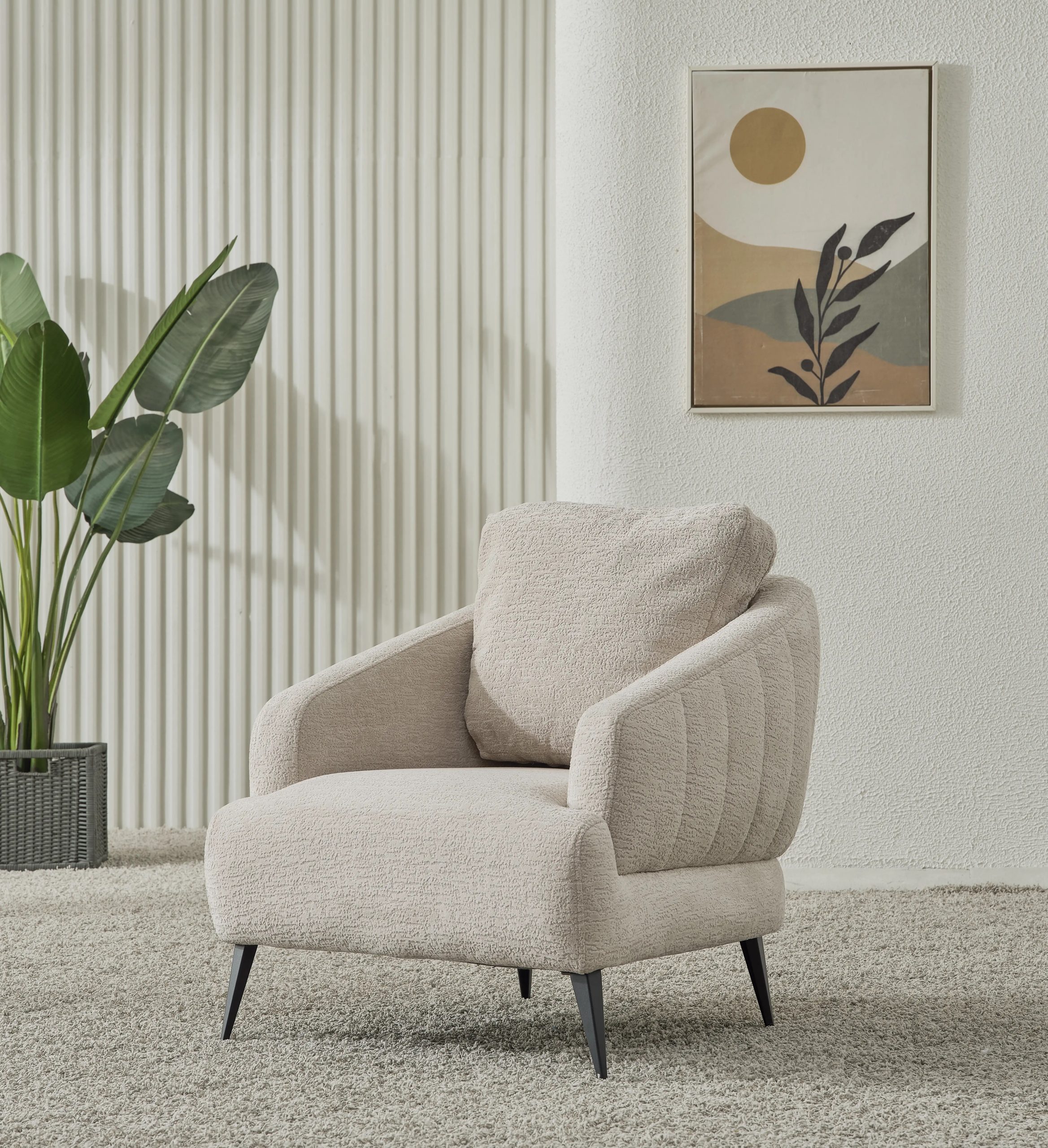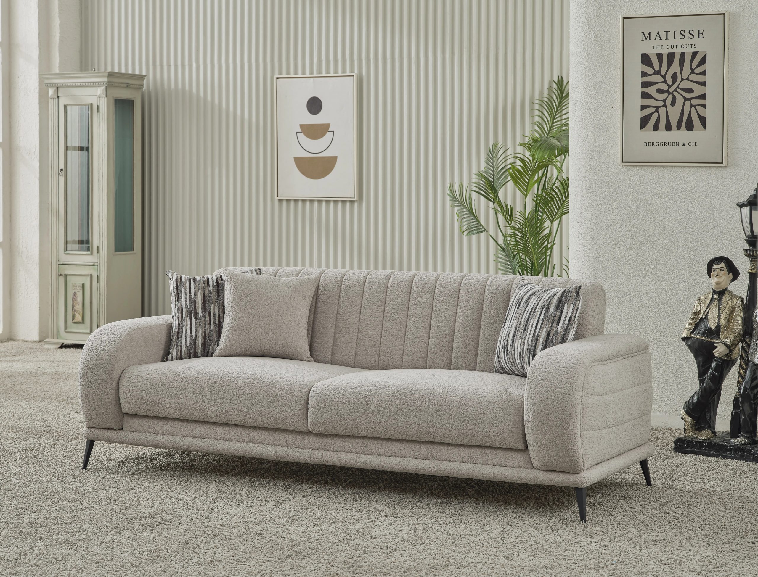 Canapeaua Havana se remarcă prin bratele rotunjite,designul spatarului cat si tapițeria Premium Boucle, care aduce un aer de distincție decorului tău. Pernele decorative, cu patternuri complementare, contribuie la un dinamism vizual, transformând canapeaua într-un element central al camerei. Materialele de înaltă calitate asigură un confort excelent, făcând din această canapea alegerea perfectă pentru momentele de relaxare, fie că vrei să te bucuri de o lectură plăcută, fie că îți dorești un somn odihnitor.