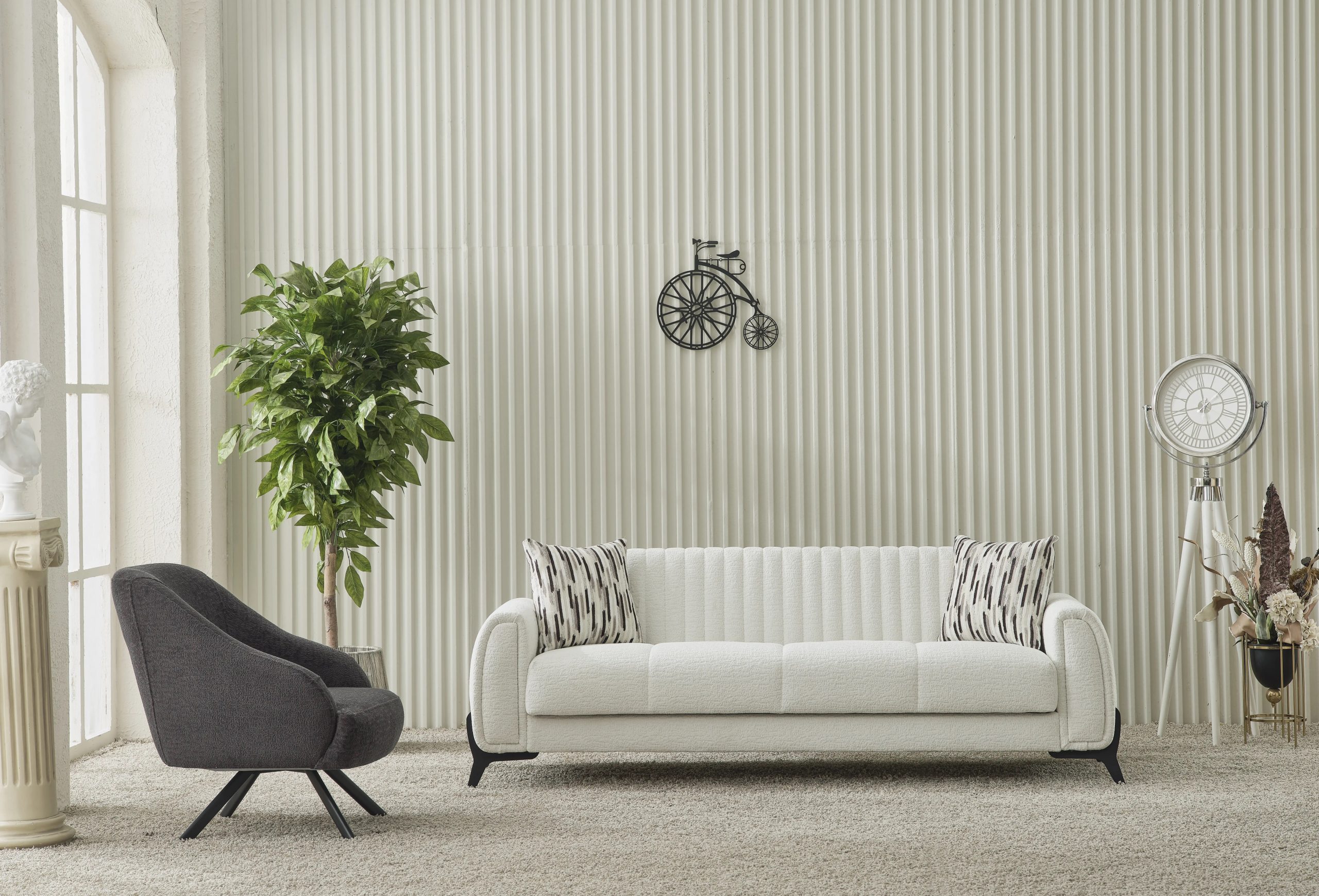 Canapeaua Palermo se remarcă prin bratele patrate mari si tapițeria Premium Boucle, care aduce un aer de distincție decorului tău. Pernele decorative, cu patternuri complementare, contribuie la un dinamism vizual, transformând canapeaua într-un element central al camerei. Materialele de înaltă calitate asigură un confort excelent, făcând din această canapea alegerea perfectă pentru momentele de relaxare, fie că vrei să te bucuri de o lectură plăcută, fie că îți dorești un somn odihnitor.