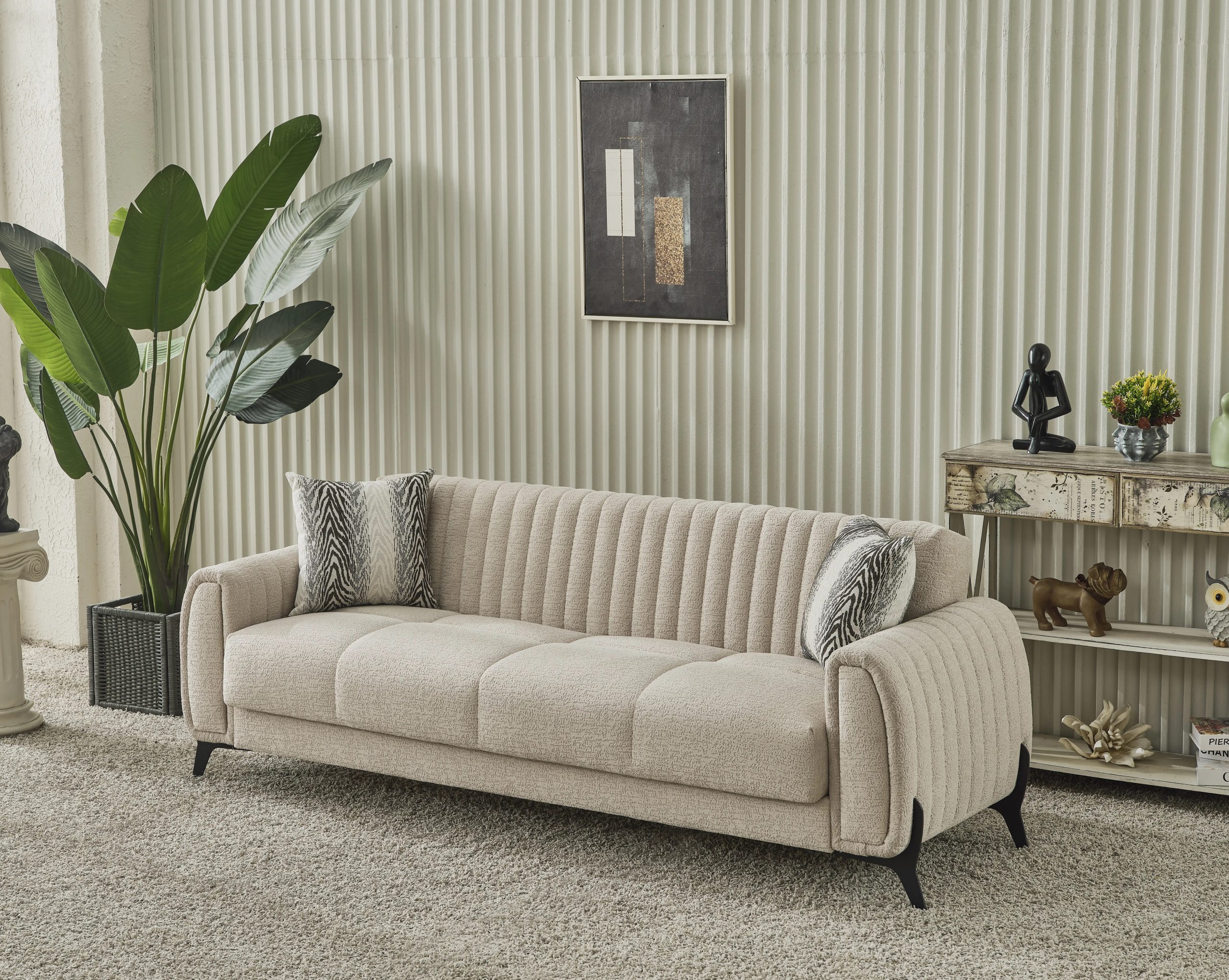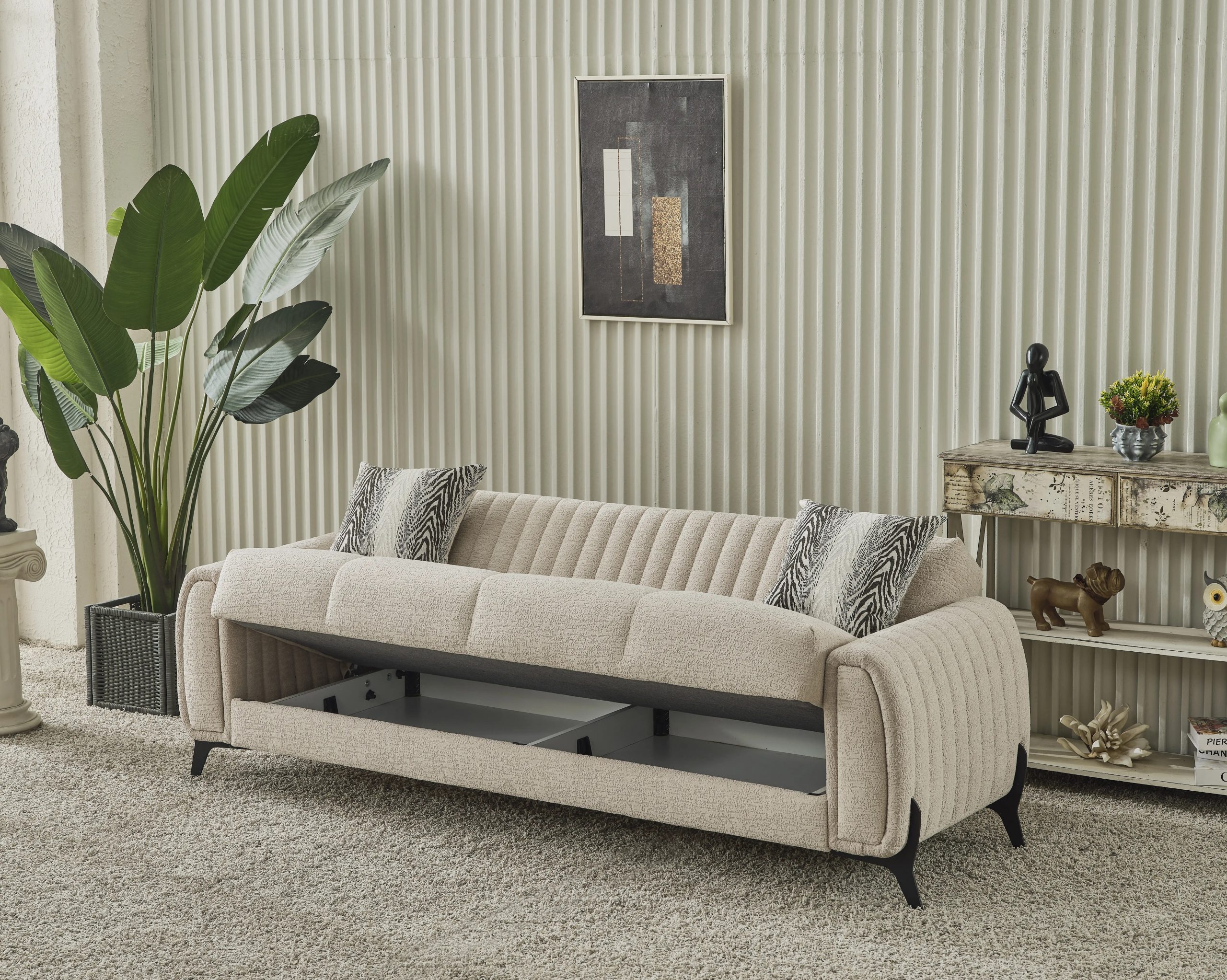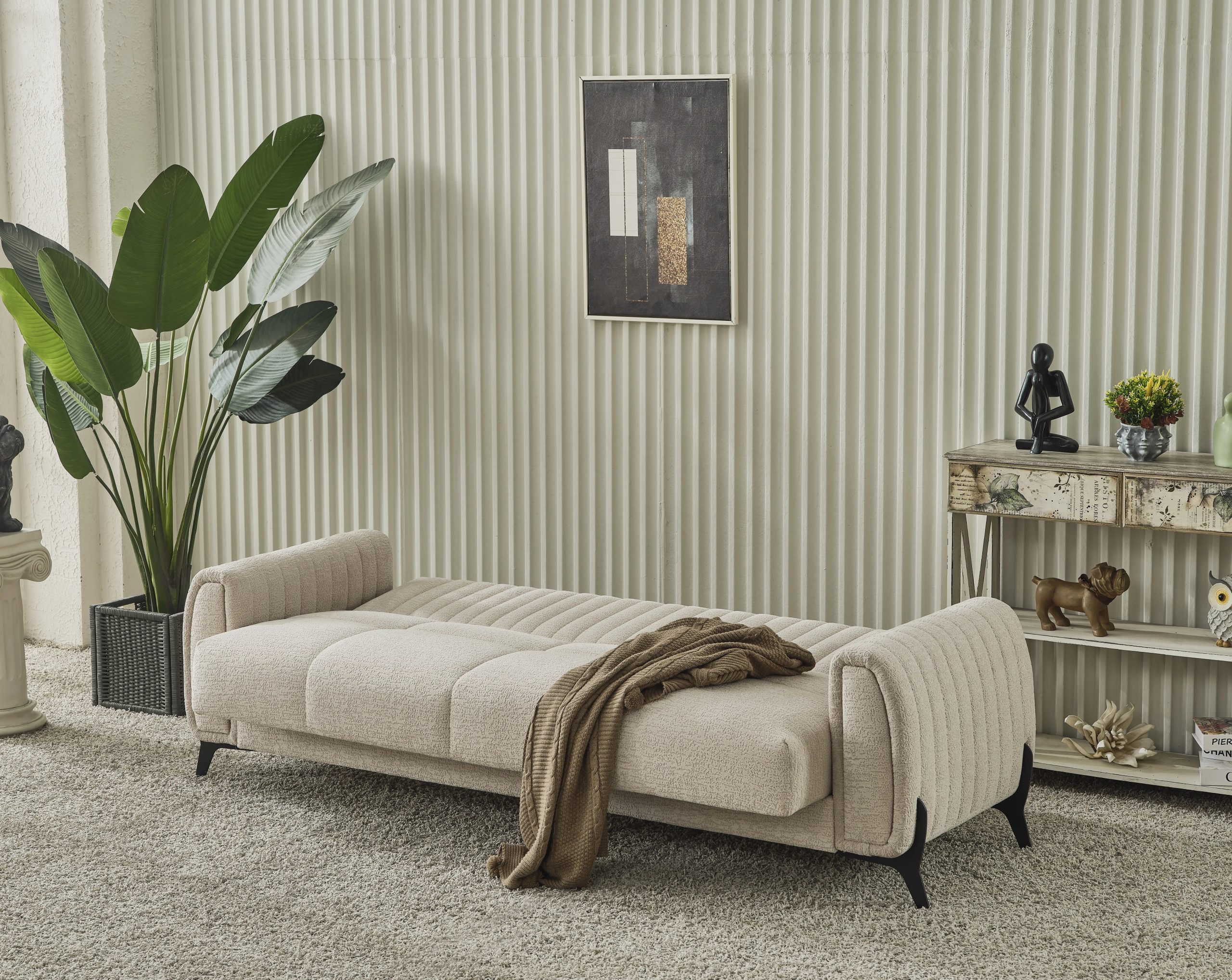 În plus, canapeaua Palermo este dotată cu o ladă de depozitare ingenios integrată, care îți permite să păstrezi lenjeria și pernele la îndemână, contribuind la un living ordonat și aerisit.