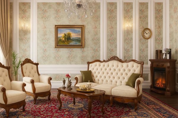 Mobilier realizat din Masiv de Paltin, Poliuretan, Piele sau Stofe.