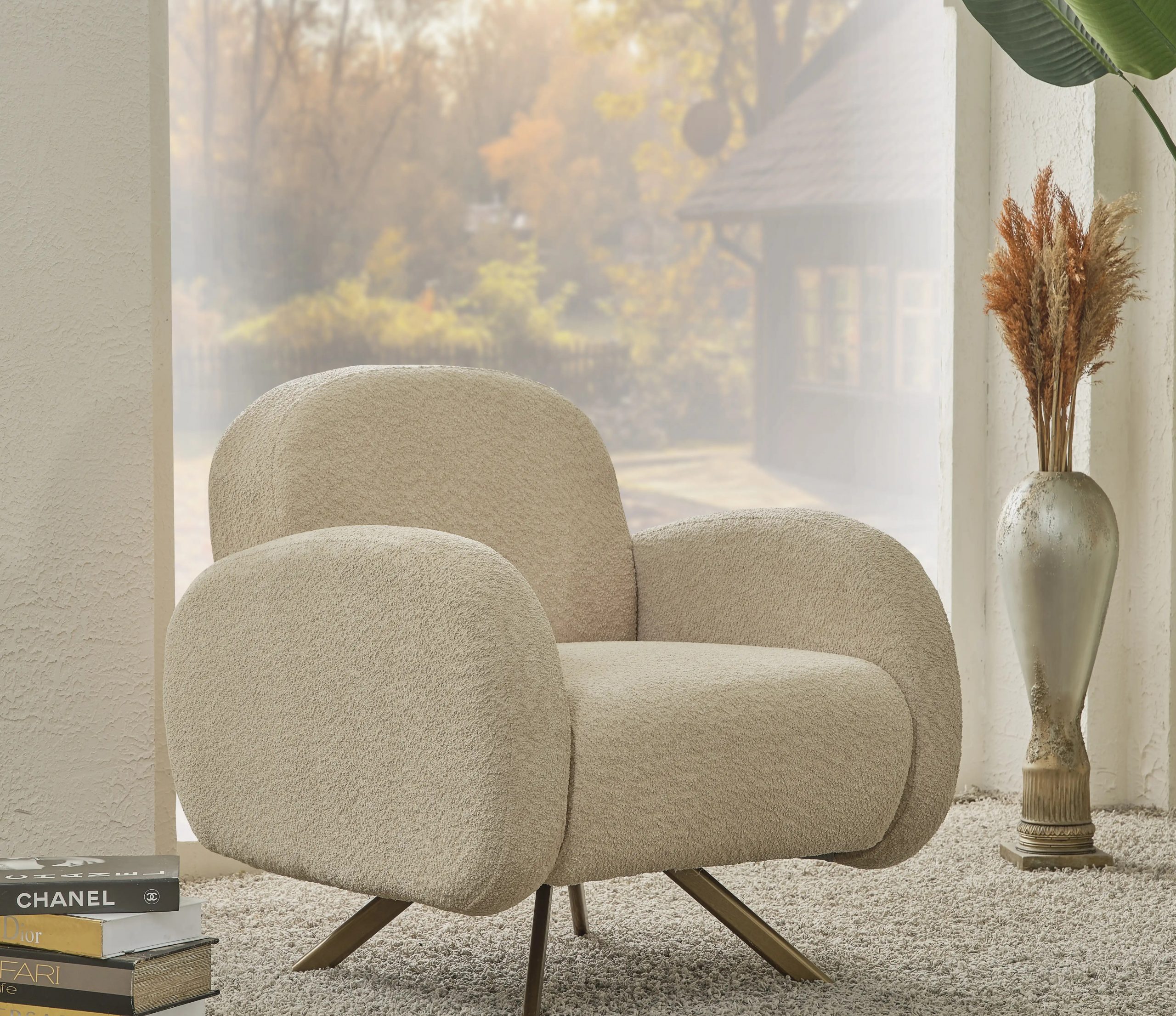 | Constructie | Schelet metalic,lemn de fag,stofa Boucle,culori variate. |