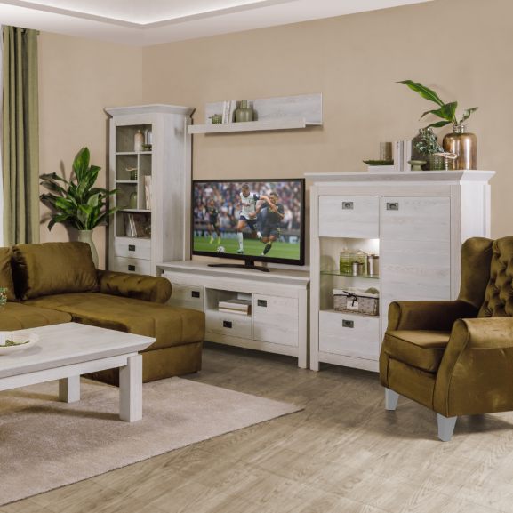 La comoda pentru TV cele doua sertare sunt ideale pentru organizarea si accesul rapid catre produse de dimensiuni reduse, iar raftul descoperit este potrivit pentru accesorii, obiecte decorative sau electronice de dimensiuni reduse.